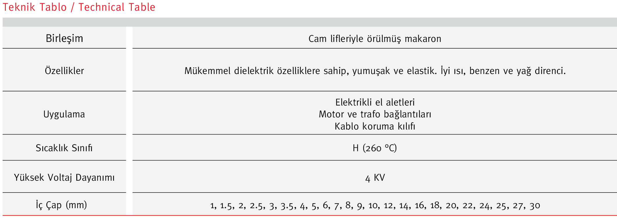 - Ürün Adı/Product Name: Cam Elyaf Silikon Makaron (H Sınıf)