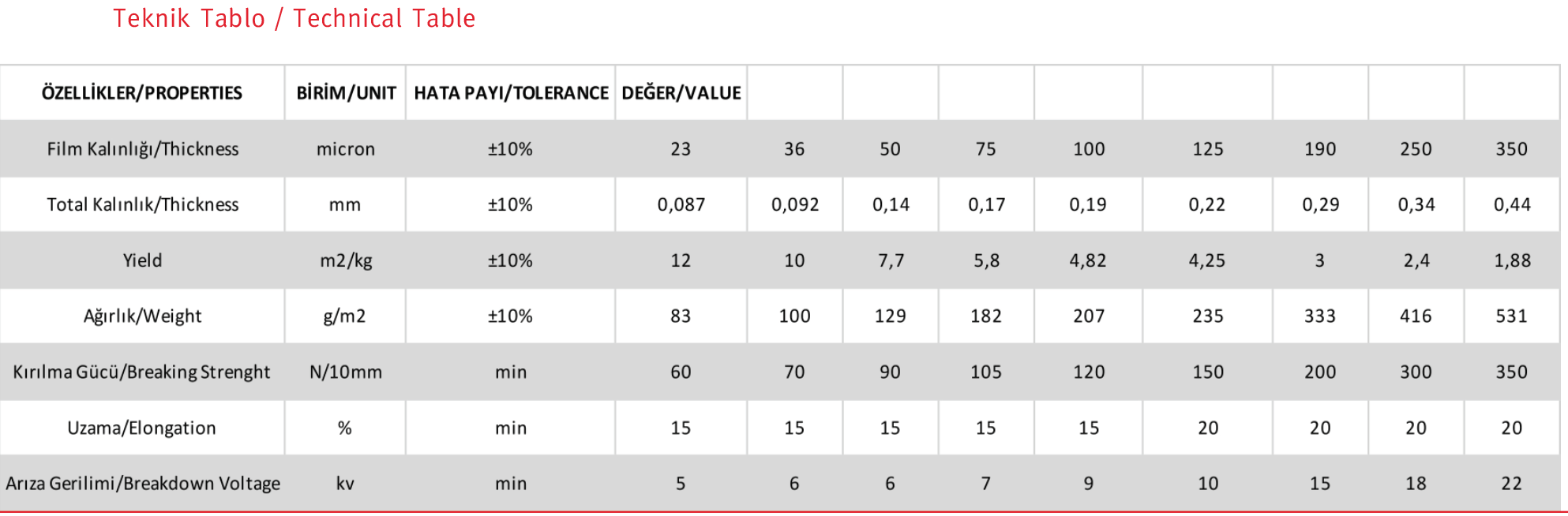 - Bileşim/Compound: Polyester Film / Fish Paper Flexible Laminate
