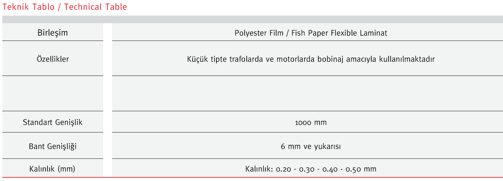 - Bileşim/Compound: Polyester Film / Fish Paper Flexible Laminat