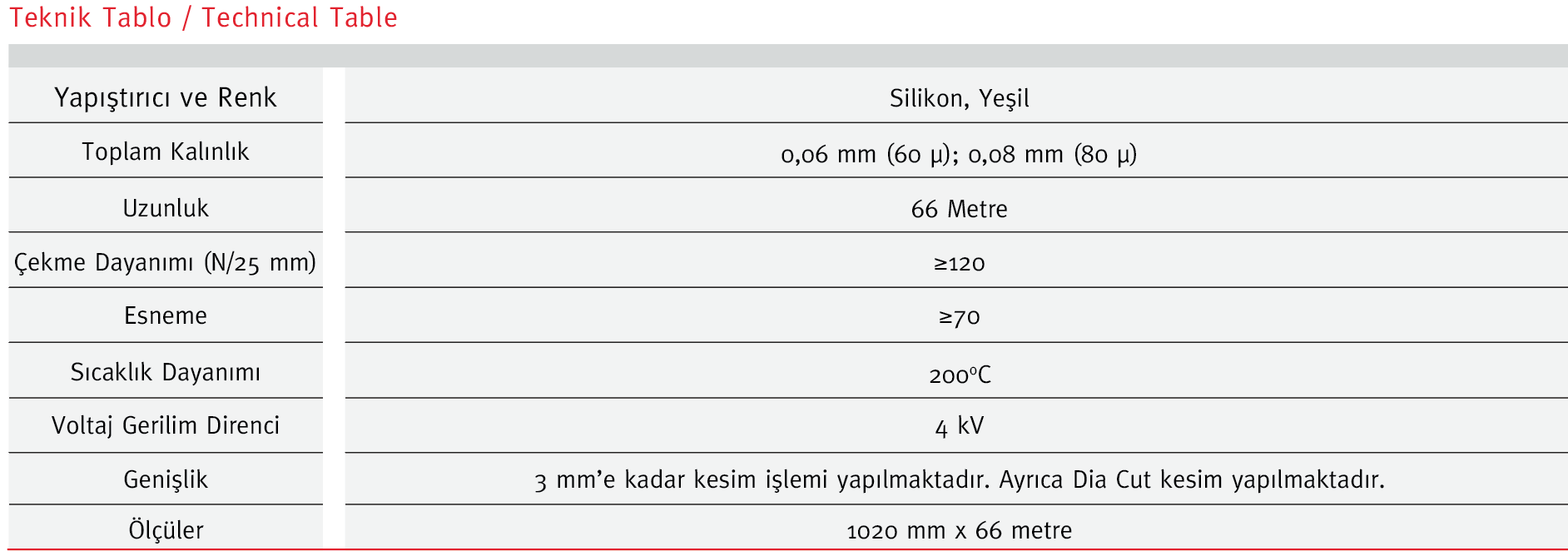 - Kalınlık/Thickness: 1020 mm x 66 meters