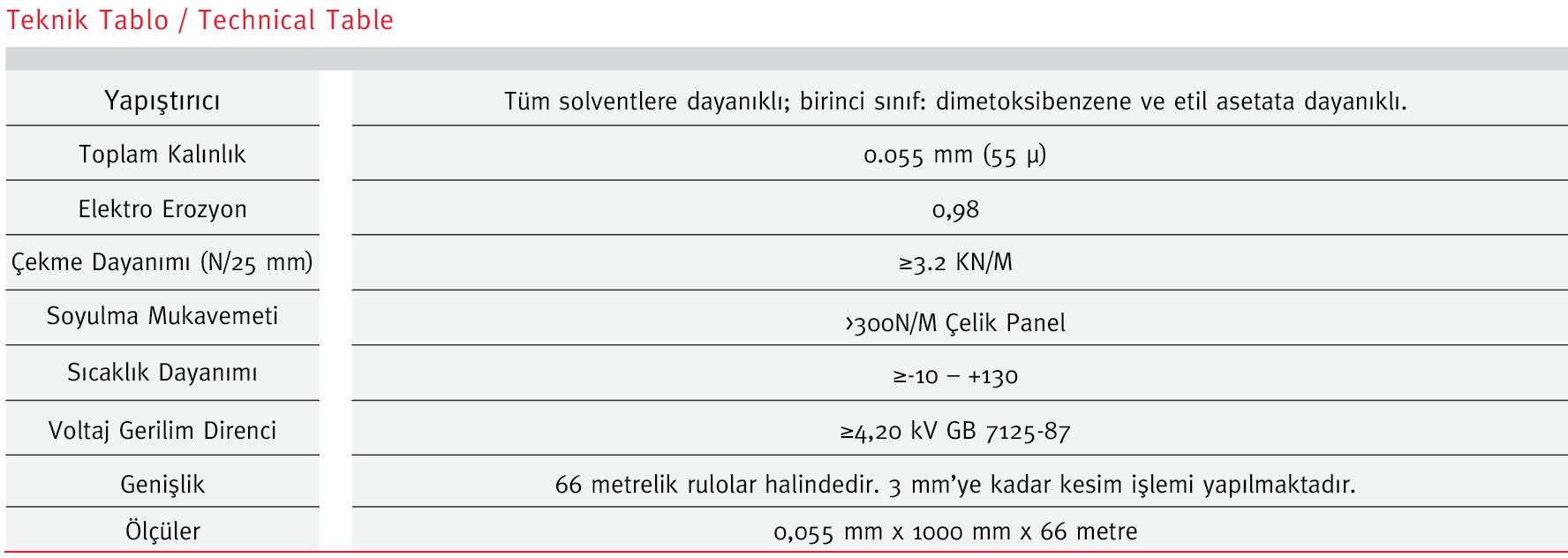 - Kalınlık/Thickness: 0.055mm x 1000mm x 66 meters